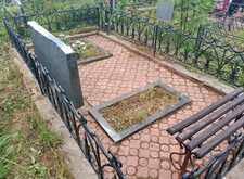 Нами был проведены следующие работы: мы вырвали всю сорную траву, растущую в цветниках и пробившуюся сквозь щели в бетонной плитке; подмели наземное покрытие; протёрли гранитный памятник и лавочку. После завершения уборки сообщили клиенту, что фундамент разрушается. Мы порекомендовали ему переустановить цоколь и переложить плитку, параллельно поправив немного покосившиеся цветники.